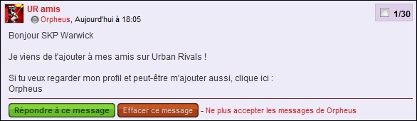 Il y a de ça déjà quelques jours : j'ai battu mon record de points en deathmatch. Vous avez terminé 1er dans un Deathmatch avec 660 points ! J'ai d’ailleurs publié un preset pour ceux que ça intéresse. Vous avez gagné 150 points de bonus et 50 Clintz. Il peut vous paraitre étrange mais n'ayez crainte, il est efficace ![]() http://www.urban-rivals.com/presets/...t=1907405&list |