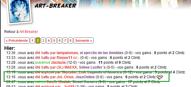 Vous avez terminé 2ème dans un Deathmatch avec 535 points ! Vous avez gagné 100 points de bonus et 35 Clintz 2ème !