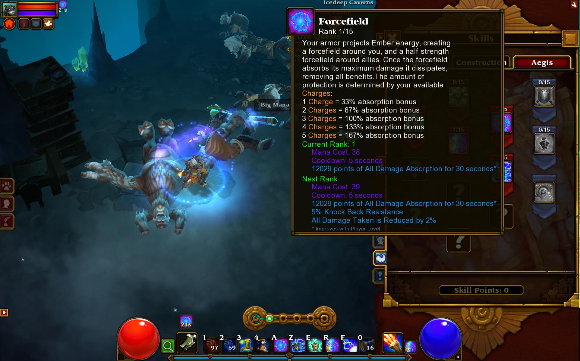 Je suis pas un pro à Torchlight 2, mais j'ai pu lire des discussions entre ingé niv. 20 par là qui disaient que le forcefield était pas si bon que ça dans la pratique.