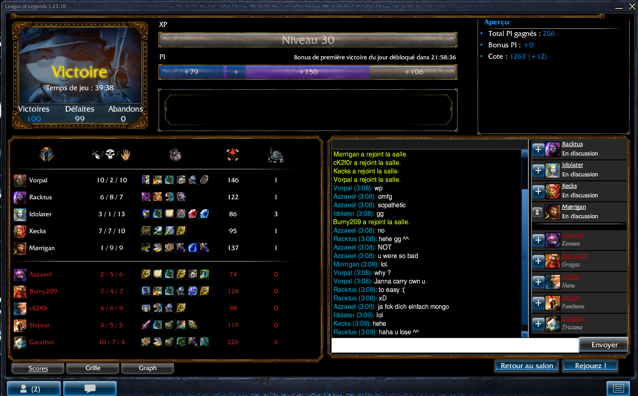 C'est exactement le temps nécessaire pour qu'un gangplank devienne utile. Normal que vous ayez perdu. (86 et c'était bon) |