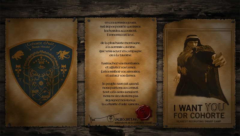 ![]() "On raconte qu’au commencement les Nains furent créés par Aulë pendant la nuit des Terres du Milieu. Aulë désirait si fort la venue des Enfants pour avoir des apprentis auxquels il pourrait enseigner son savoir et ses talents qu’il ne voulut pas attendre l’accomplissement des plans d’Ilùvatar. Et il créa les Nains tels qu’ils sont encore aujourd’hui, car l’apparence des Enfants à venir n’était pas claire à son esprit et la Terre était encore au pouvoir de Melkor : il souhaitait donc qu’ils fussent robustes et résistants." ![]() ![]() Nom de la confrérie : La cohorte d’ Aulë Etat du recrutement : Ouvert Profil de joueur recherché : Les joueurs recherchés sont des nains, donc si tu as une barbe que tu sens la bière et que tu ne dépasses pas 1m45 c’est bon signe ! Au niveau des disponibilités aucune demande de connexion par semaine n’est obligatoire juste un bonjour et au revoir quand la personne se connecte. Chacun vit sa vie comme il l’entend et les nains sont très soucieux du bien être de chacun. Donc il nous faut des nains des vrais ! serveur vocal: mumble Orientation : PVE / Artisanat / PVP Fondateur : Surgrim Liens : forum : http://lacohortedaule.forumpro.fr/forum Charte : http://lacohortedaule.forumpro.fr/t2...cohorte-d-aule Nous rejoinde : http://lacohortedaule.forumpro.fr/c6...de-recrutement ![]() • Objectifs principaux : Nos objectifs : rassembler un maximum de passionnés par les nains, leurs états d’esprits, leurs dons pour faire la fête et pour découper du gobelin. Mais aussi faire une grosse partie du contenu. Du fait de l’expérience de certains dans la cohorte et en dehors nous savons que faire des raids uniquement de nains est impossible sans certaines classes. Donc pour que chacun puisse réussir à s’équiper comme il se doit nous participons aux raids de différente confrérie qui sont nos alliées. Mais nous voudrions aussi réussir des raids avec un maximum de nains comme par exemple faire un guetteur avec juste un homme en maitre du savoir et le reste composé de nain ! |