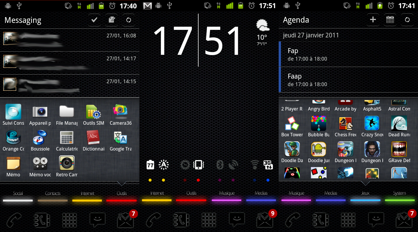 Bon, j'avoue que pour moi le principal atout de Touchwizz sur SGS, c'était de pouvoir classer mes applis comme je le voulais, je comprend pas que ça ait pas encore été intégré dans Android stock.