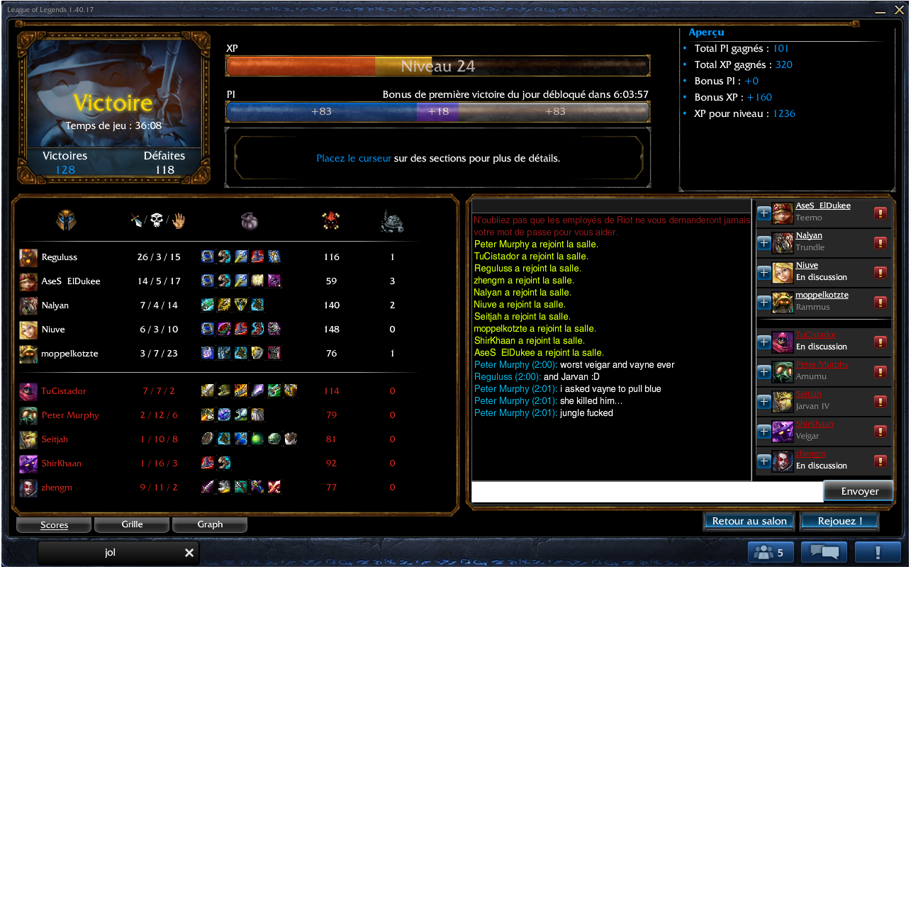 Là perso je finis toutes les games à 200+, quelque soit la situation en early.