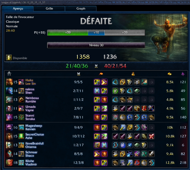 Et la je lee, jsuis bien feed, 5/1, 198 creep a 20mn, et je passe mes fights sous ecureuils, npnp, notre lulu (mid la notre) prefere se boots AP.