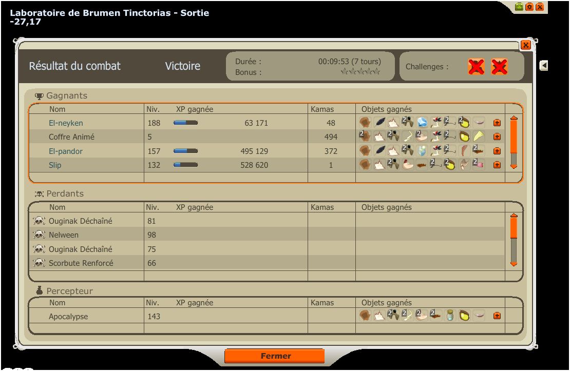 Les drops : Le Nelween lâche très facilement ses ressources. Sur 5 donjons à 5 ldd : 10 fioles et 29 trucs (manque 1 pour 10 ceintures donc). Et hormis les papattes (on y reviendra) tout est présent dans le donjon.