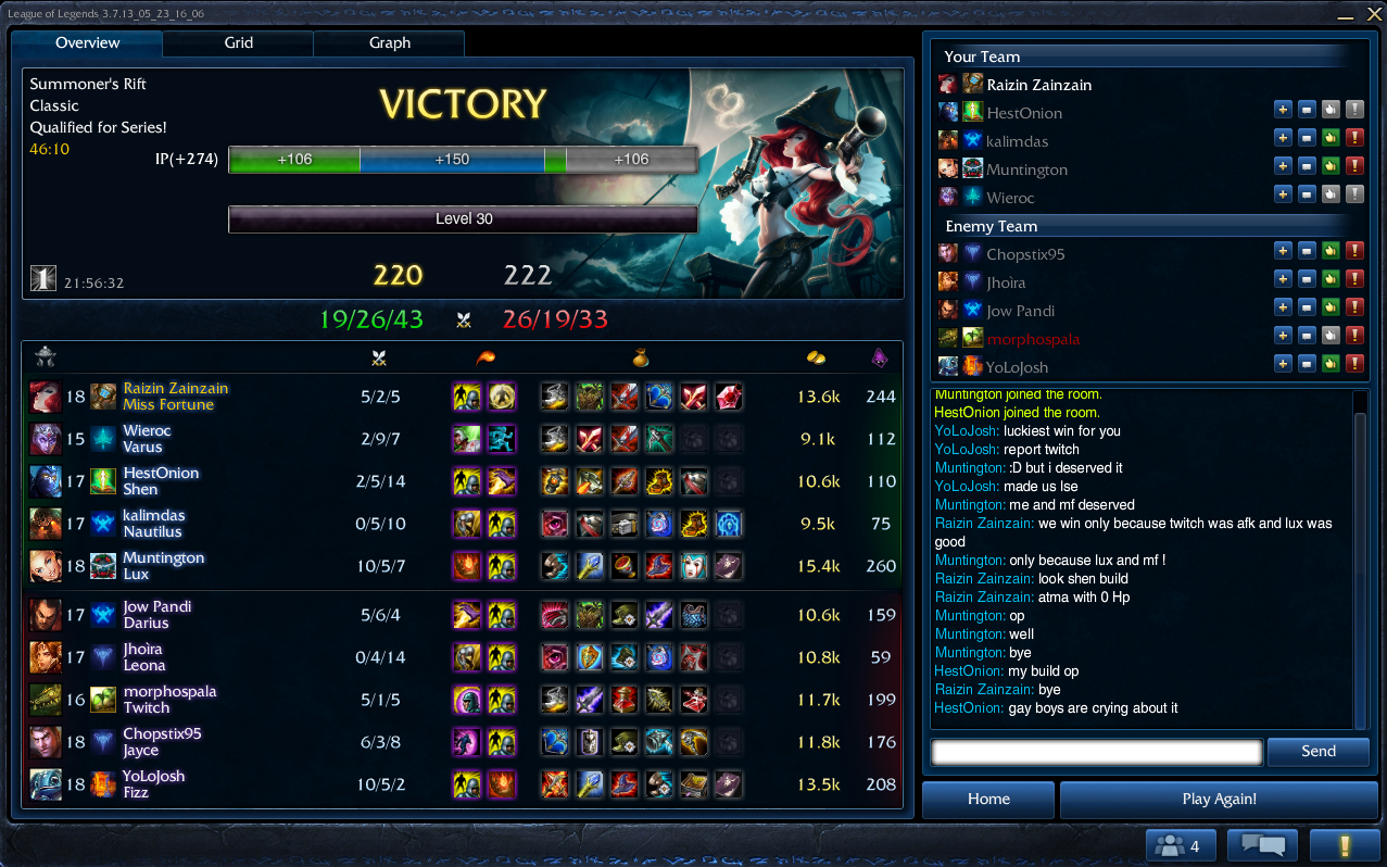 J'aurai pu passer en promo pour Silver IV mais la Elise top a décidé d'afk parce que Shen a donner un kill à Yorick.