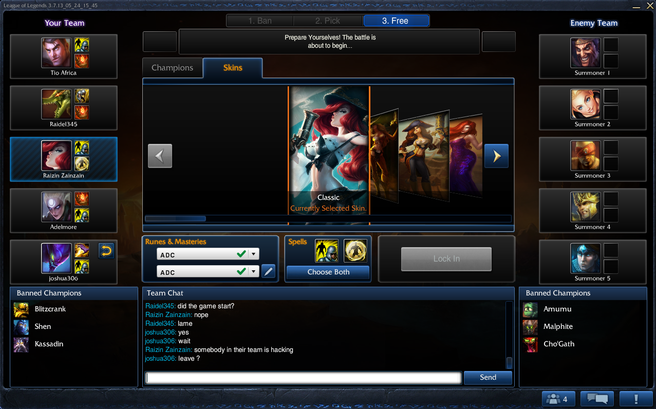 Ca rame à mort, on est coincés dans l'écran de sélection des champions.