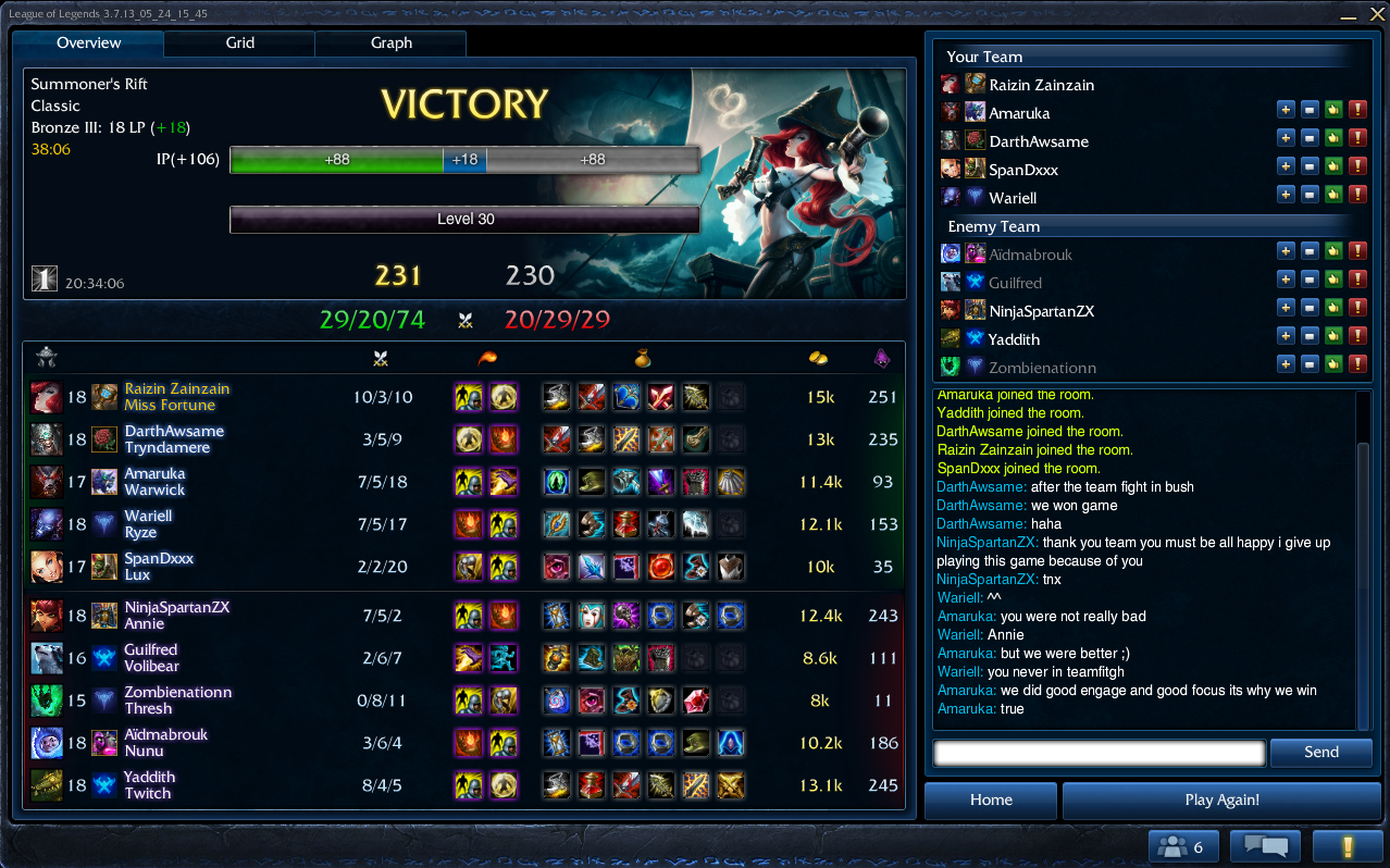 Garen jungle 2/7 lv 10 à la fin de la partie.