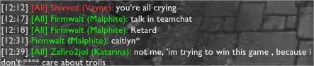 Nous font chier dans le chat pregame puis décide de tous nous troll en feedant un maximum parce que le 1st pick ne voulais pas support .