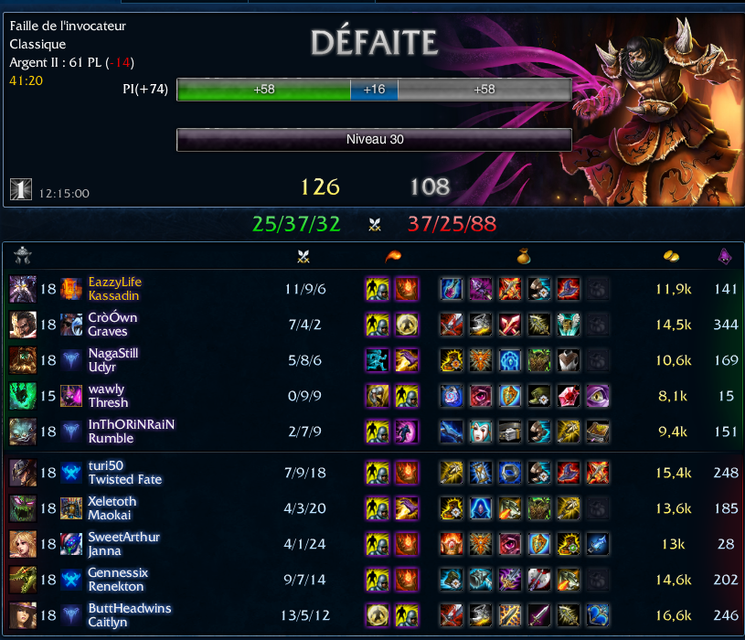 ), mon swain mid j'ai beau le camp il se fait chain kill par akali, ma bot lane ils croient jouer des champions OP ( tresh/caitlyn ) et ils se font ouvrir car ils savent pas les gérer.