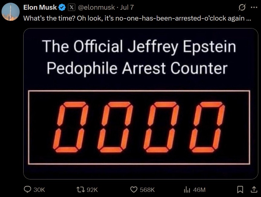 D'ailleurs Musk se fait à nouveau plaisir avec l'affaire Epstein :