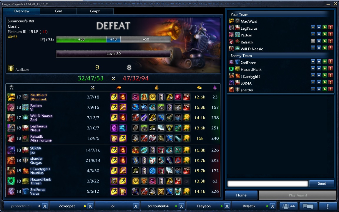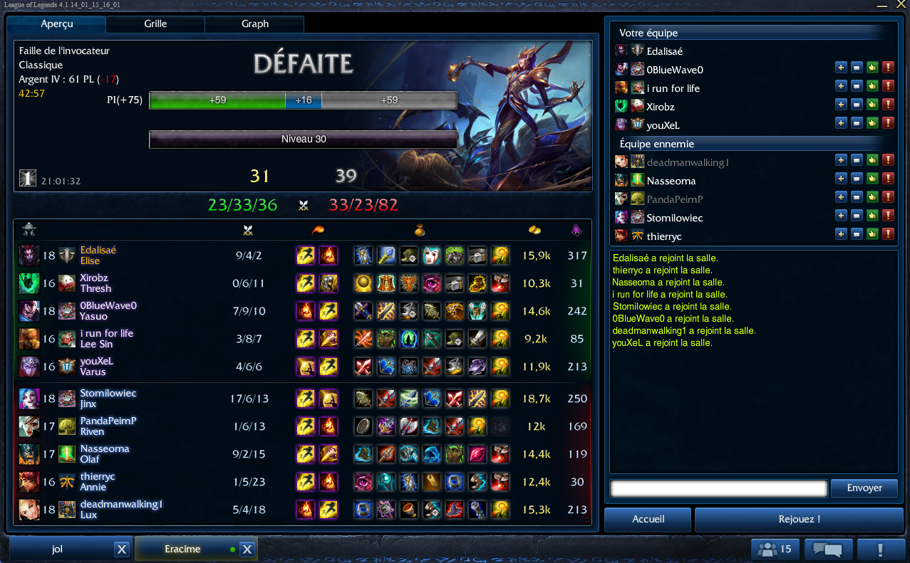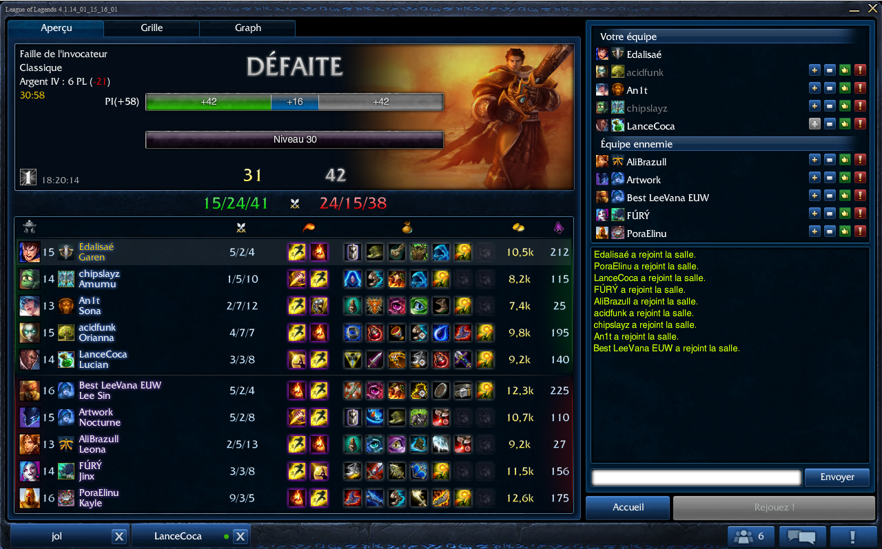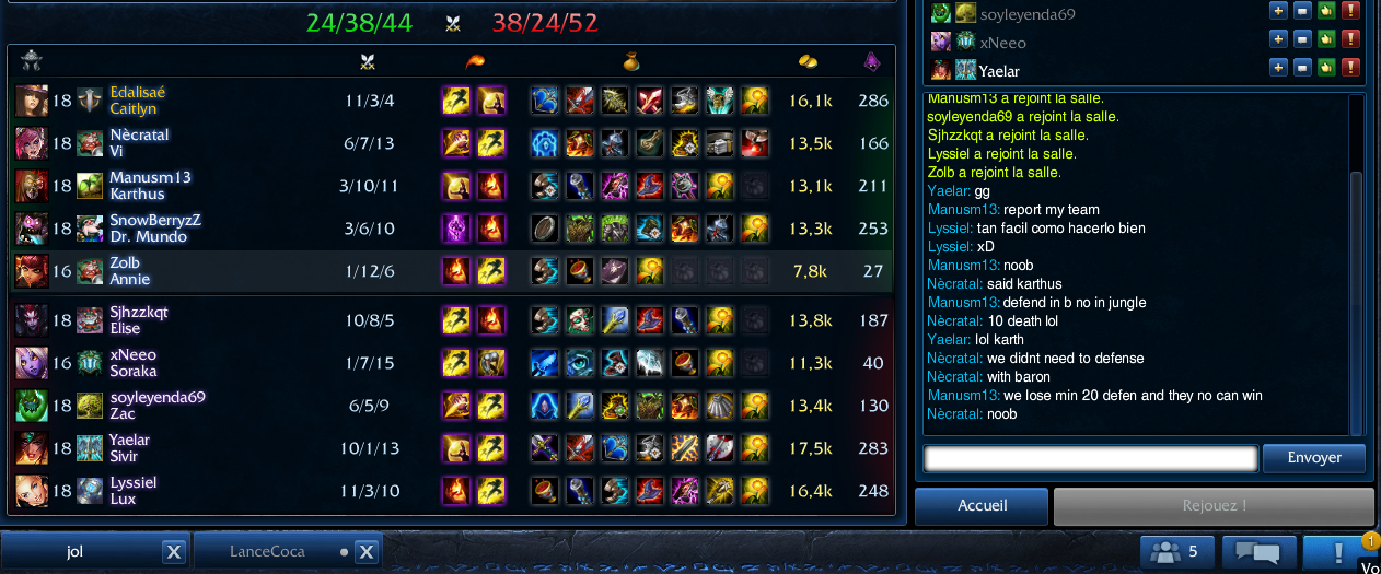 Fizz dans ma team, 30 min 60 farm... etre repassée silver III ca fait mal, obligée de rejouer avec du bronze et ca se sent...