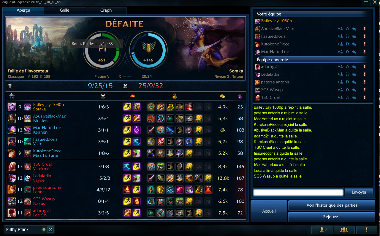 Mon MMR est dégueu, pourtant j'ai enchaîné masse victoire, je ne sais pas pourquoi ça ne monte pas mais c'est bien relou. En fin d'aprèm j'ai perdu 2 games, -25 lp -25 lp.