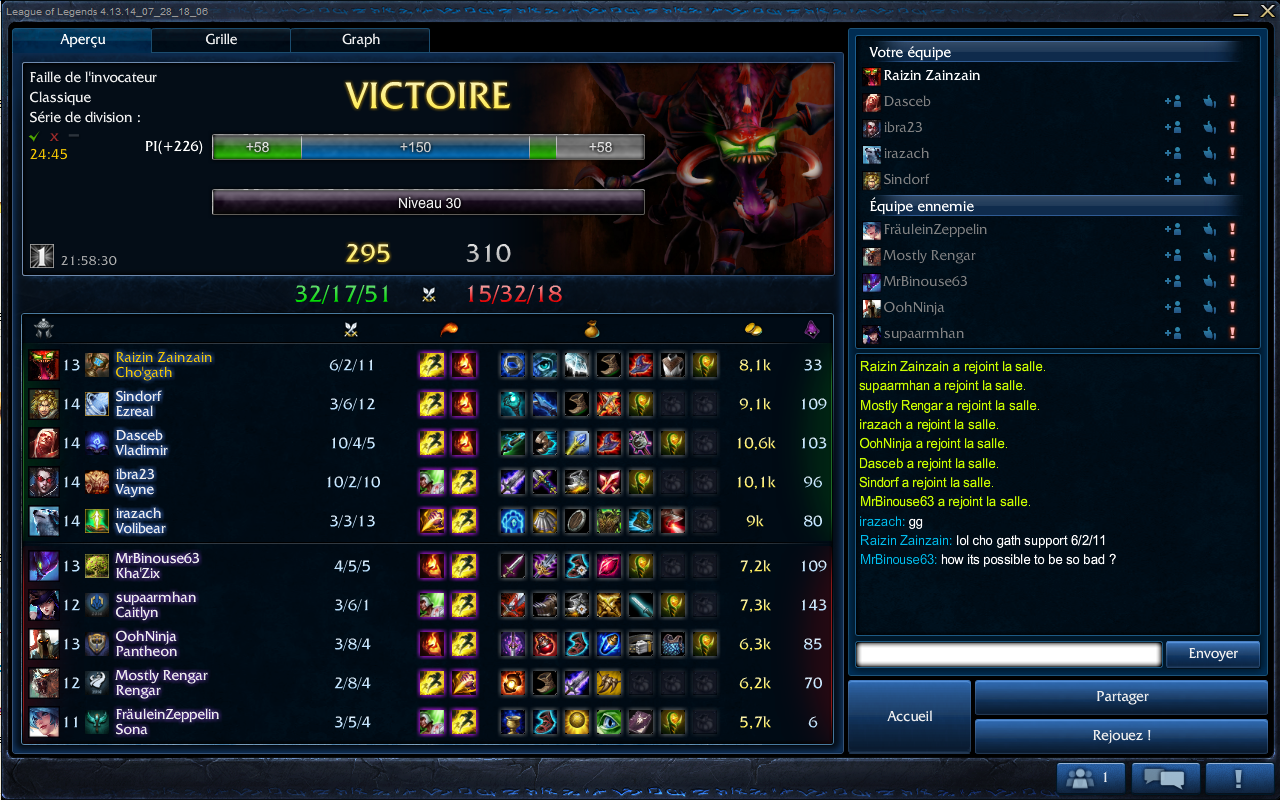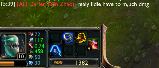 1ere game je dois support car last pick et mon adc joue comme quand on débute(il ne bouge pas entre 2 AA, se prend l'aggro des creeps pour taper la vayne adverse qui du coup fait un doublé car ce con capte pas que quand je ping c'est pas pour rien), le jax top se fait tuer 3 fois par ryze et ragequitt.