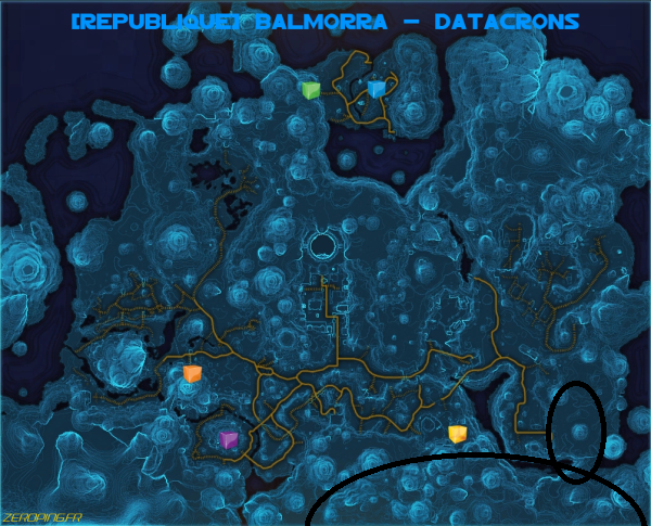 je connait les datacrons et leur emplacements, mais ce n'est pas sa, je vous ai mis une carte des datacrons pour la république et entourer en noir. la plus grande zone entourer permet même d'aller hors map.