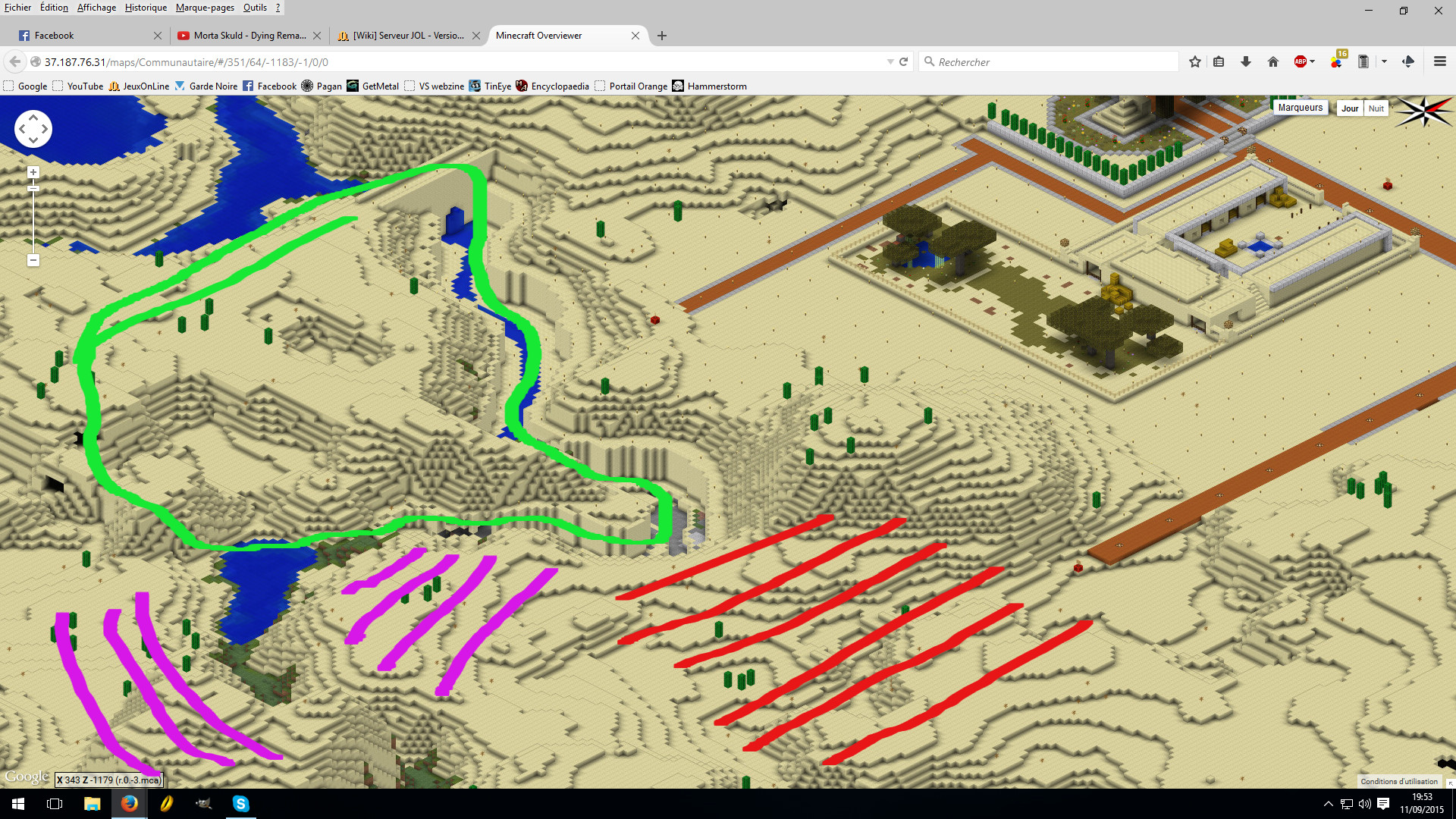 Jaune : Limite actuelle de la ville (Libre à vous d'aller plus loin si vous voulez hein  )