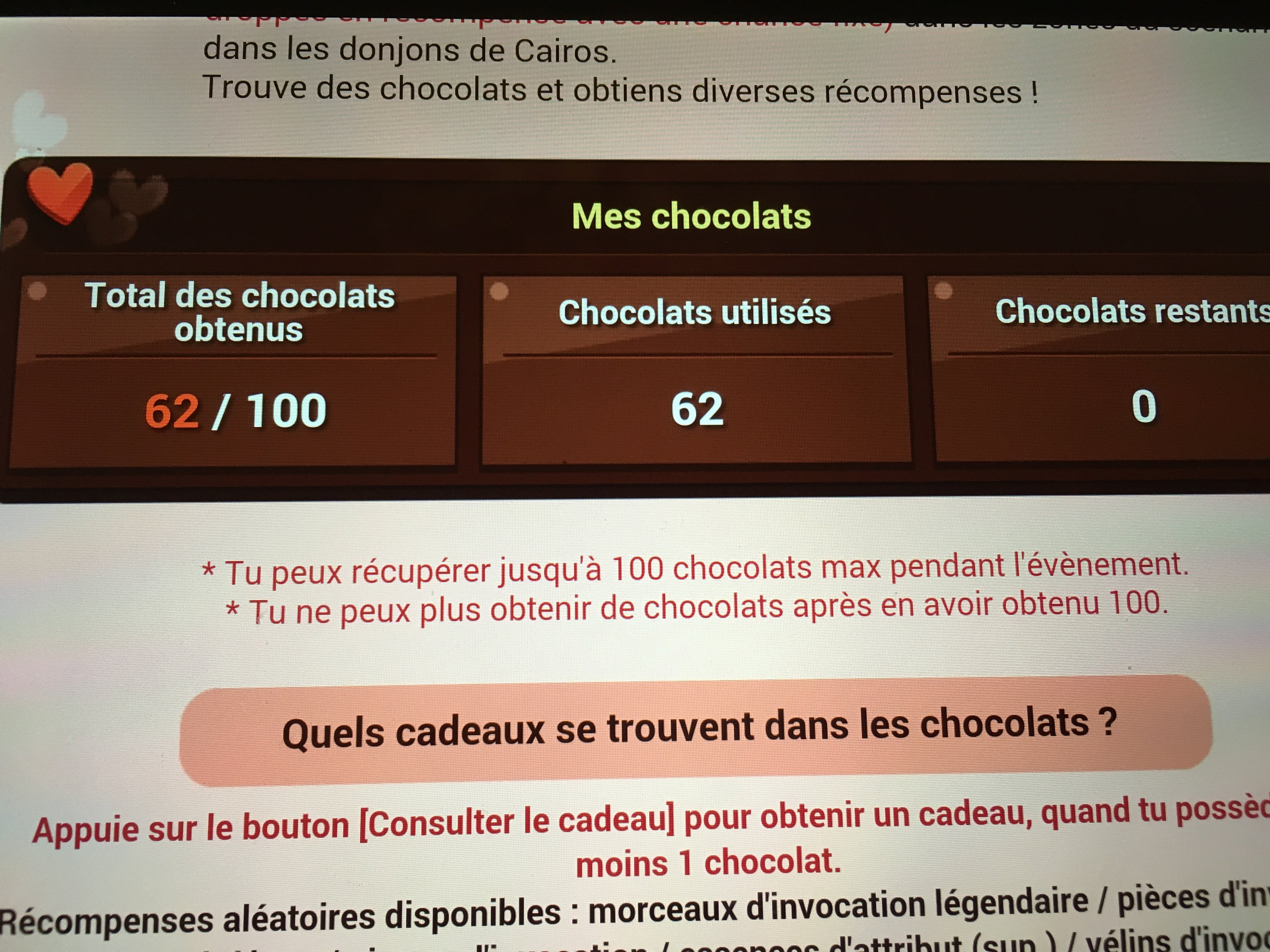 J'ai toujours pas refill je dois en être a 60 d'énergie et j'ai drop 5 chocolats |