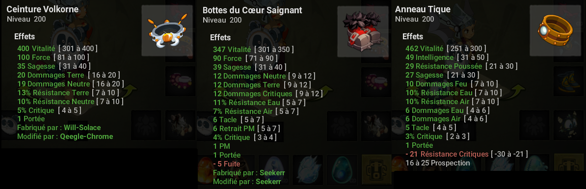 [EST/VENTE] Ceinture Volk 3% terre / Bottes coeur saignant 4% eau / Tique 162 vita