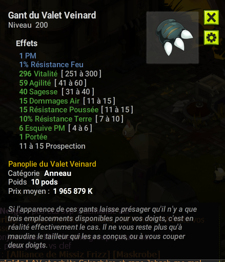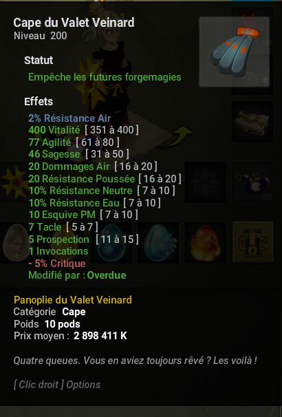 [EST/VENTE] Gant du Valet Veinard TBJ PM % feu + Cape du Valet Veinard BJ 2% air (trans)