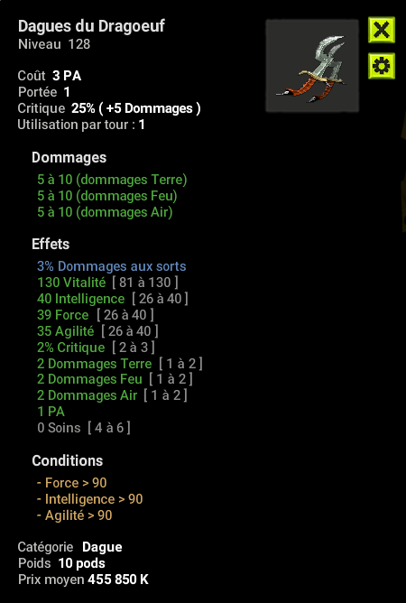[VENTE] Dagues dragoeuf 3% do sort -1% crit -1fo -5agi 0 soin 50M