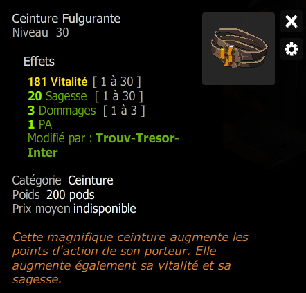 [ESTI/VEND] Ceinture Fulgurante lvl 30