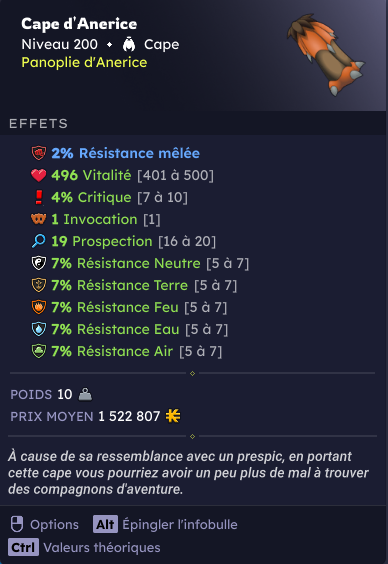 [EST/VDS] Cape d'Anerice 2% Res Melee / Ajout exo PO/PM