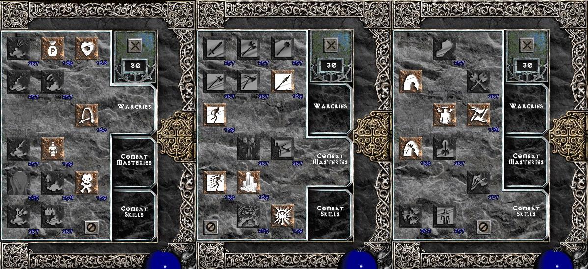 Tout ça amène un bon boost de compétences de base, on rajoute commande de bataille qui ajoute +1@ tous les 5 niveaux, et je le monte au niveau 257, donc + 51@ skills.