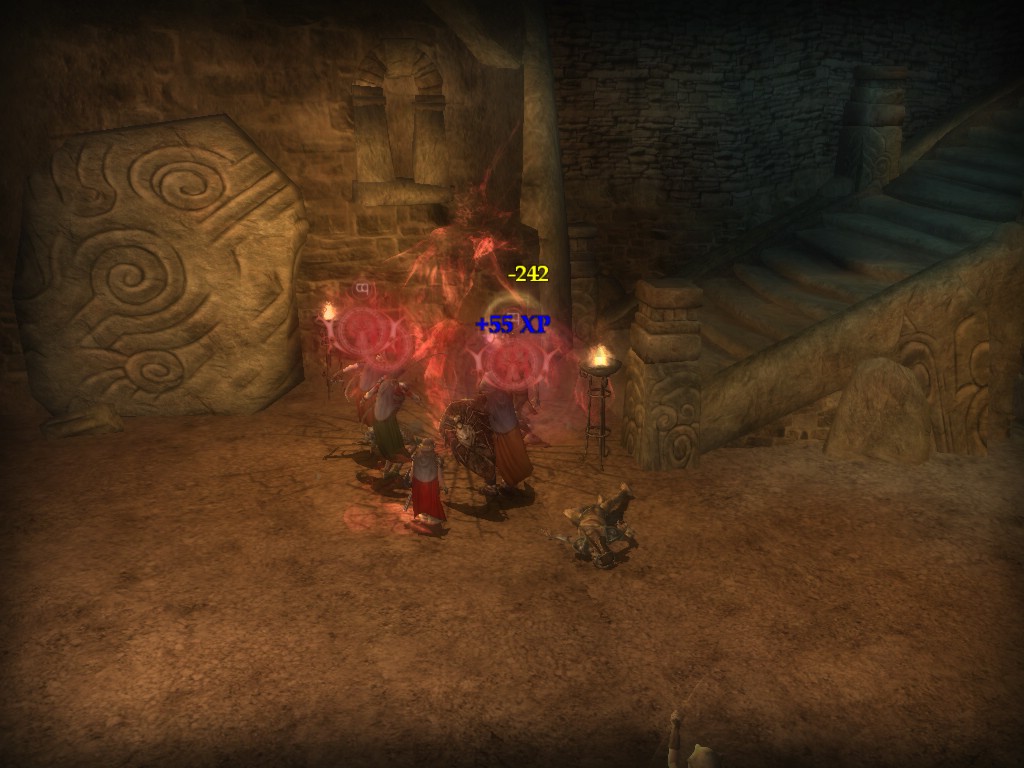 Expérience de jeu assez sympa, un donjon que j'ai pour ma part trouvé assez grand, labyrinthesque, avec des araignées qui descendent du plafond, des undeads qui sortent de terre à quelques mètres de vos pieds, des spectres et d'autres joyeusetés.