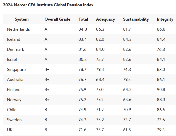 14,7% de pauvreté en suède contre 7,5% pour la france. L'ancien premier ministre décrit son propre système de retraite comme : "Nous avons le meilleur système de retraite au monde, avec le seul petit défaut qu’il donne des pensions trop basses." Cela confirme donc le problème de la capitalisation qui profite bien aux riches et laisse les autres dans la mouise. Citation :